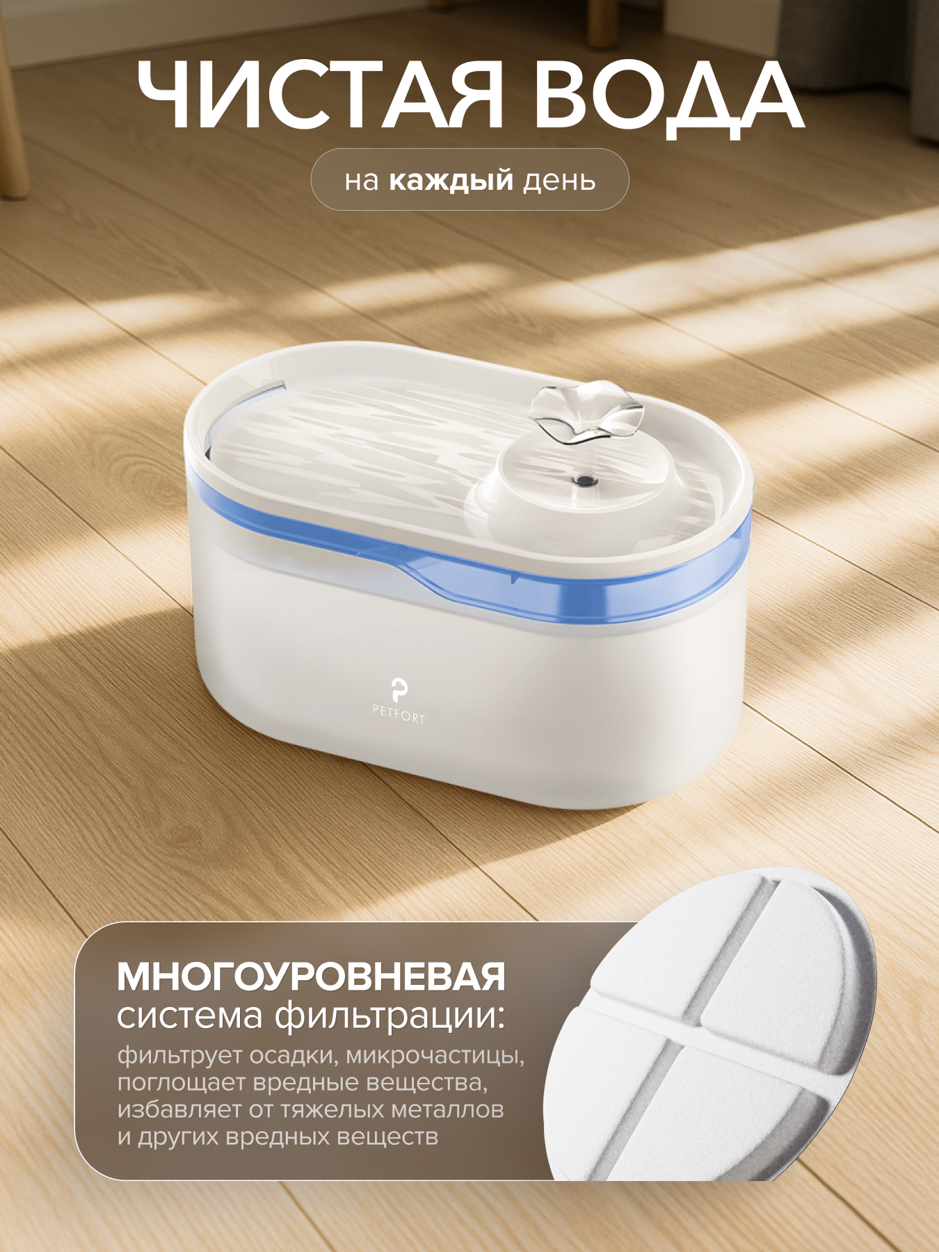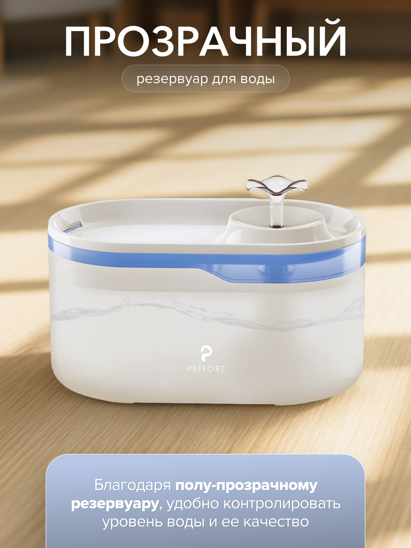 Автоматическая поилка-фонтан бренда PETFORT – это прекрасная возможность обеспечить домашних питомцев регулярной подачей чистой питьевой проточной водой. Это очень важный момент, ведь кошки инстинктивно не признают стоячую воду и на воле обычно пьют только проточную, которая защищает их от различных заболеваний, включая мочекаменную болезнь. Наша автопоилка имеет многоуровневую систему фильтрации и обеспечивает Вашего питомца всеми необходимыми макро и микроэлементами. Поилка-фонтанчик очень красивая, стильная и практичная, поэтому без труда впишется в любой интерьер. Самый главный элемент - прозрачный резервуар, который позволяет всегда отслеживать уровень воды и обеспечивать своевременное пополнение поилки, чтобы питомец никогда не испытывал жажду. Объем миски 2.8 литра – оптимальный вариант для котят и щенков, а также для взрослых котов, собак, грызунов и других домашних животных. В наличии также всегда есть сменные фильтры (Артикул: 1248926340), их можно заказать в любой момент, как и другие зоотовары, с которыми вы можете ознакомиться в нашем магазине. Успейте купить качественную автоматическую поилку для Вашего питомца, ведь забота о его здоровье – это лучшее проявление Вашей любви!