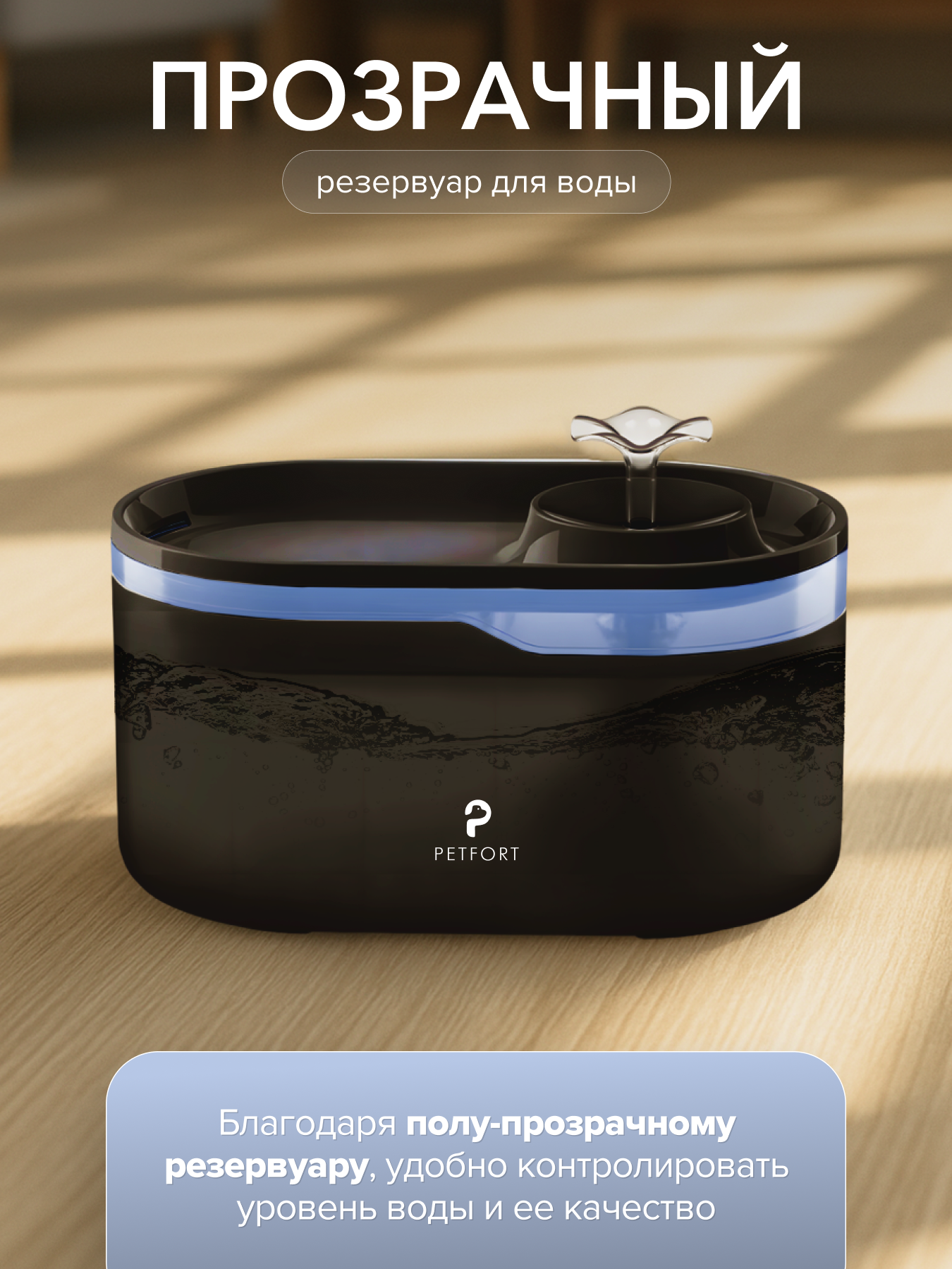 Автоматическая поилка-фонтан бренда PETFORT – это прекрасная возможность обеспечить домашних питомцев регулярной подачей чистой питьевой проточной водой. Это очень важный момент, ведь кошки инстинктивно не признают стоячую воду и на воле обычно пьют только проточную, которая защищает их от различных заболеваний, включая мочекаменную болезнь. Наша автопоилка имеет многоуровневую систему фильтрации и обеспечивает Вашего питомца всеми необходимыми макро и микроэлементами. Поилка-фонтанчик очень красивая, стильная и практичная, поэтому без труда впишется в любой интерьер. Самый главный элемент - прозрачный резервуар, который позволяет всегда отслеживать уровень воды и обеспечивать своевременное пополнение поилки, чтобы питомец никогда не испытывал жажду. Объем миски 2.8 литра – оптимальный вариант для котят и щенков, а также для взрослых котов, собак, грызунов и других домашних животных. В наличии также всегда есть сменные фильтры (Артикул: 1248926340), их можно заказать в любой момент, как и другие зоотовары, с которыми вы можете ознакомиться в нашем магазине. Успейте купить качественную автоматическую поилку для Вашего питомца, ведь забота о его здоровье – это лучшее проявление Вашей любви!