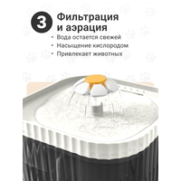 Питьевой фонтан для кошек - это 4-ступенчатая циркуляционная система фильтрации. Система использует сменный фильтр для очистки воды, удаления грязи и пищевых частиц.