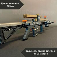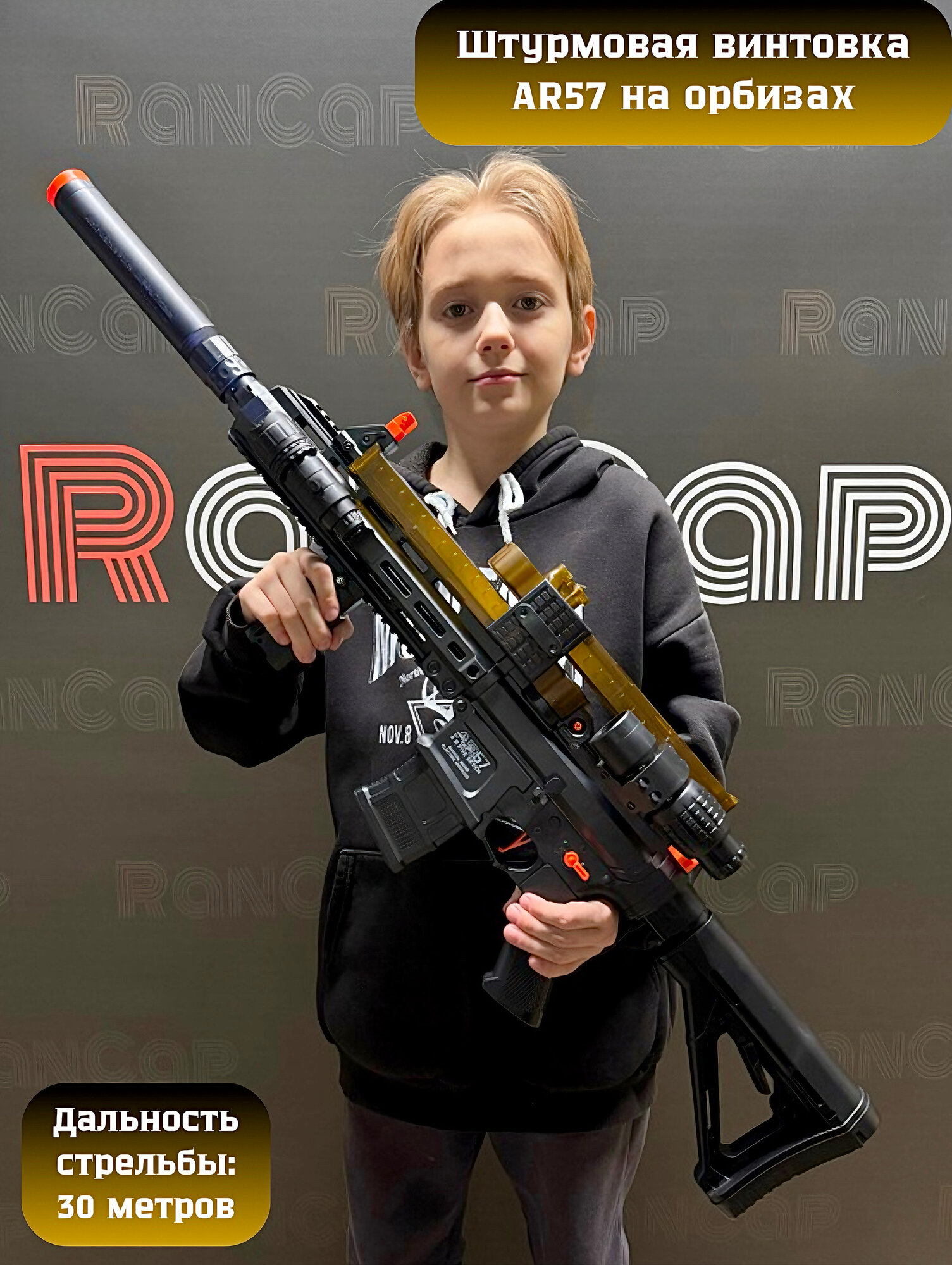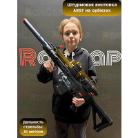 Автоматическая штурмовая винтовка AR57 с орбизами — детский автомат на аккумуляторе, созданный по образцу настоящей штурмовой винтовки. Эта игрушечная винтовка на орбизах работает в автоматическом режиме стрельбы и отличается высокой скорострельностью, что делает игровой процесс ещё более захватывающим.