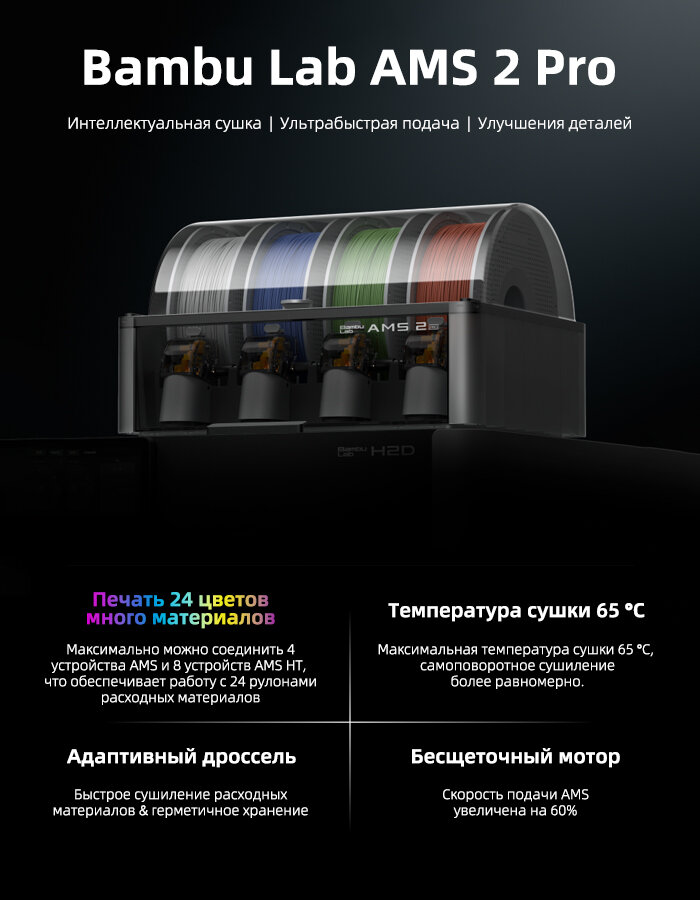 Купить 3D-принтер Bambu Lab AMS 2 Pro с автоматической системой подачи, улучшенной сушкой и новым продуктом с доставкой по всей России.