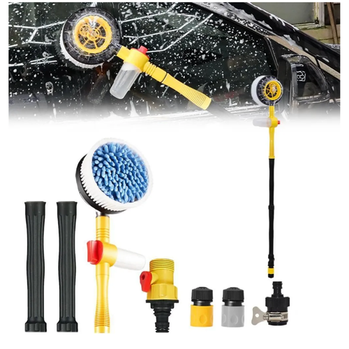 【Автоматически вращающаяся на 360° автомобильная щетка】Автоматически вращающаяся выдвижная щетка для мойки автомобилей, подключенная к садовому шлангу 1/2 дюйма (DN15) и открывающая кран, щетка для мытья может поворачиваться на 360° сама по себе под действием силы воды. 【Распылительная насадка высокого давления и автоматическое вспенивание】 Положите моющее средство в коробку отжимной швабры, и пена будет выделяться автоматически за счет подачи воды. Если снять головку щетки, швабра из микрофибры может превратиться в насадку для мойки высокого давления, которая распыляет тонкую, но мощную струю воды. 【Высококачественная щетка для чистки】 Чистящая насадка для швабры с мягкой и высокоплотной микрофиброй из синели внутри и щеткой из прочной полипропиленовой щетины снаружи не царапает нежную лакокрасочную поверхность автомобиля. 【Высокоэффективная щетка】 Вытекание воды из отверстия щетки, чем больше давление воды, тем быстрее вращается щетка. Внутренние щетки вращаются, чтобы смахивать грязь, угловая конструкция подходит для труднодоступных мест. 【Многофункциональность】 Насадка для душа имеет 5 различных настроек - от тонкой до туманной, и работает она довольно хорошо. Поможет вам вымыть пол, окно, постирать одеяло, заборы, принять душ для домашних животных, а также может быть садовым разбрызгивателем воды и т. д.