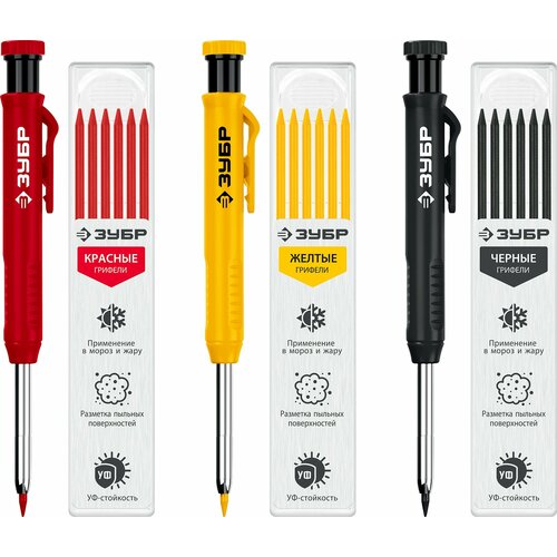 Автоматический строительный карандаш ЗУБР Профессионал АСК 18 сменных грифелей: 6ч + 6ж + 6к 06312-H6: сравнение цен, характеристики, фото, актуальное наличие и цены.