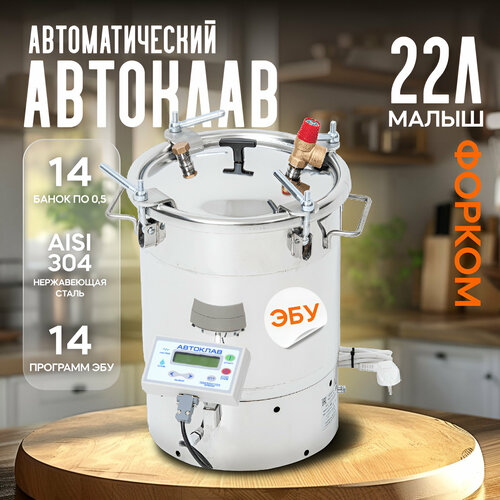 Автоклав-стерилизатор состоит из корпуса, крышки, фиксируемой с помощью зажимных устройств, кассеты для банок, содержащей опорное днище с вертикальными стержнями, оснащенными прижимными элементами, подвижно смонтированную пластину, упругий элемент, причем пластина и опорное днище имеют одинаковую форму, а упругий элемент размещен на опорном днище, которое установлено с зазором ко дну корпуса. Крышка корпуса снабжена предохранительным клапаном. При этом автоклав-стерилизатор снабжен тепло-электронагревательным элементом, размещенным в зазоре между опорным днищем кассеты и дном корпуса , днище корпуса по периметру снабжено опорным ободком, а к его наружной поверхности прикреплен датчик температуры, соединенный с блоком управления, кроме этого, в нижней части корпуса установлен выходной патрубок для слива воды, снабженный электромагнитным клапаном также связанным с блоком управления. Внутренняя поверхность крышки выполнена с отогнутым вниз краем и снабжена кольцевым ободком и между ними размещена уплотняющая прокладка. Борта корпуса также отогнуты для предотвращения разрушения уплотняющей прокладки. Прижимные устройства крышки выполнены в виде стержней с одной стороны с резьбой, а с другой - отогнутых в виде рукояток. Датчик температуры прикреплен к днищу корпуса прижимной планкой.