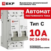 Автомат постоянного тока DC 10А, тип C, двухполюсный 2P, 6кА, cо встроенной опломбировкой клемм EKF ВА 47-63 (Автоматический выключатель C10): сравнение цен, характеристики, фото, актуальное наличие и цены.