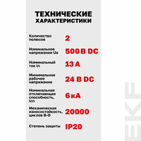 Автоматический выключатель 2P 13А (C) 6кА ВА 47-63 DC EKF PROxima: сравнение цен, характеристики, фото, актуальное наличие и цены.