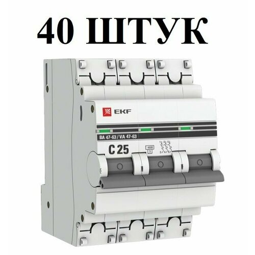 Автоматический выключатель 3P 25А (C) 4,5kA ВА 47-63 EKF PROxima 40 штук: сравнение цен, характеристики, фото, актуальное наличие и цены.