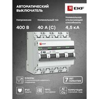 Автоматический выключатель 4P 40А (C) 4,5kA ВА 47-63, EKF PROxima: сравнение цен, характеристики, фото, актуальное наличие и цены.