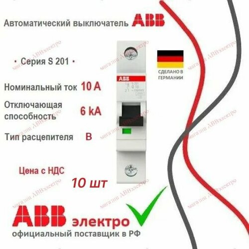 Купить Автоматический выключатель ABB S201 10A 6kA 1P тип B — 10шт. 2CDS251001R0105 с доставкой по всей России. Автоматический выключатель ABB S201 10A 6kA 1P тип B — 10шт. 2CDS251001R0105: сравнение цен, характеристики, фото, актуальное наличие и цены.