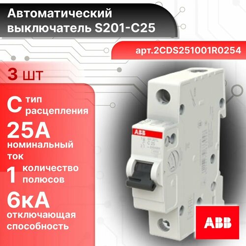 Автоматический выключатель 1P (1П) 25А тип C 6кА S201 ABB 2CDS251001R0254 3шт: сравнение цен, характеристики, фото, актуальное наличие и цены.