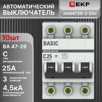 Автоматический выключатель 3P (3П) 25А тип C 4.5кА ВА 47-29 Basic EKF mcb4729-3-25C 10шт: сравнение цен, характеристики, фото, актуальное наличие и цены.