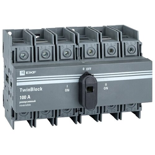 Рубильник EKF TwinBlock 100A 3P реверсивный c рукояткой для прямой установки предназначен для пропускания номинальных токов, включения и отключения электрических цепей номинальным напряжением до 690 В переменного тока частотой 50 и 60 Гц в устройствах распределения электрической энергии.
