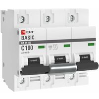 Автоматический выключатель ВА 47-100 EKF mcb47100-3-100C-pro (3Р, 100 А, 10 кА, характеристика С)