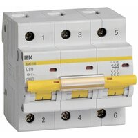 Автоматический выключатель IEK 3P ВА 47-100 (C) 80 А (MVA40-3-080-C)