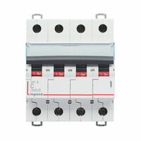 Четырехполюсный автоматический выключатель Legrand DX3-E типа C, рассчитанный на ток нагрузки 50 А и максимальную силу тока (отключательную способность) 6 кА предназначен для защиты электроприборов от поломок при перегрузках электросети или коротком замыкании. Устройство замеряет показатели электрического тока в непрерывном режиме и в случае его превышения срабатывает расцепитель, который размыкает электрическую цепь. Автомат устанавливается в специальных электрощитках в жилых домах, офисных и производственных помещениях.