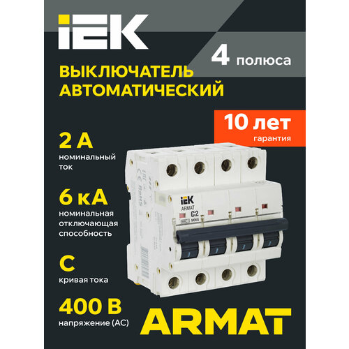 Автоматический выключатель IEK ARMAT M06N, 4P, C, 2А, 400В, 6кА, термомагнитный, IP20, монтаж на DIN-рейку: сравнение цен, характеристики, фото, актуальное наличие и цены.
