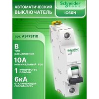 Автоматический выключатель 1P (1П) 10А тип B 6кА Acti9 iC60N Schneider Electric A9F78110 1шт: сравнение цен, характеристики, фото, актуальное наличие и цены.
