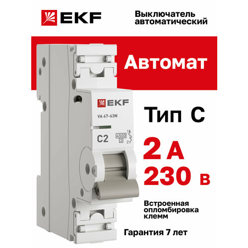 Купить Автоматический выключатель ВА 47-63N 1P 2А (C) 4,5 кА PROXIMA EKF с доставкой по всей России. Автоматический выключатель ВА 47-63N 1P 2А (C) 4,5 кА PROXIMA EKF: сравнение цен, характеристики, фото, актуальное наличие и цены.