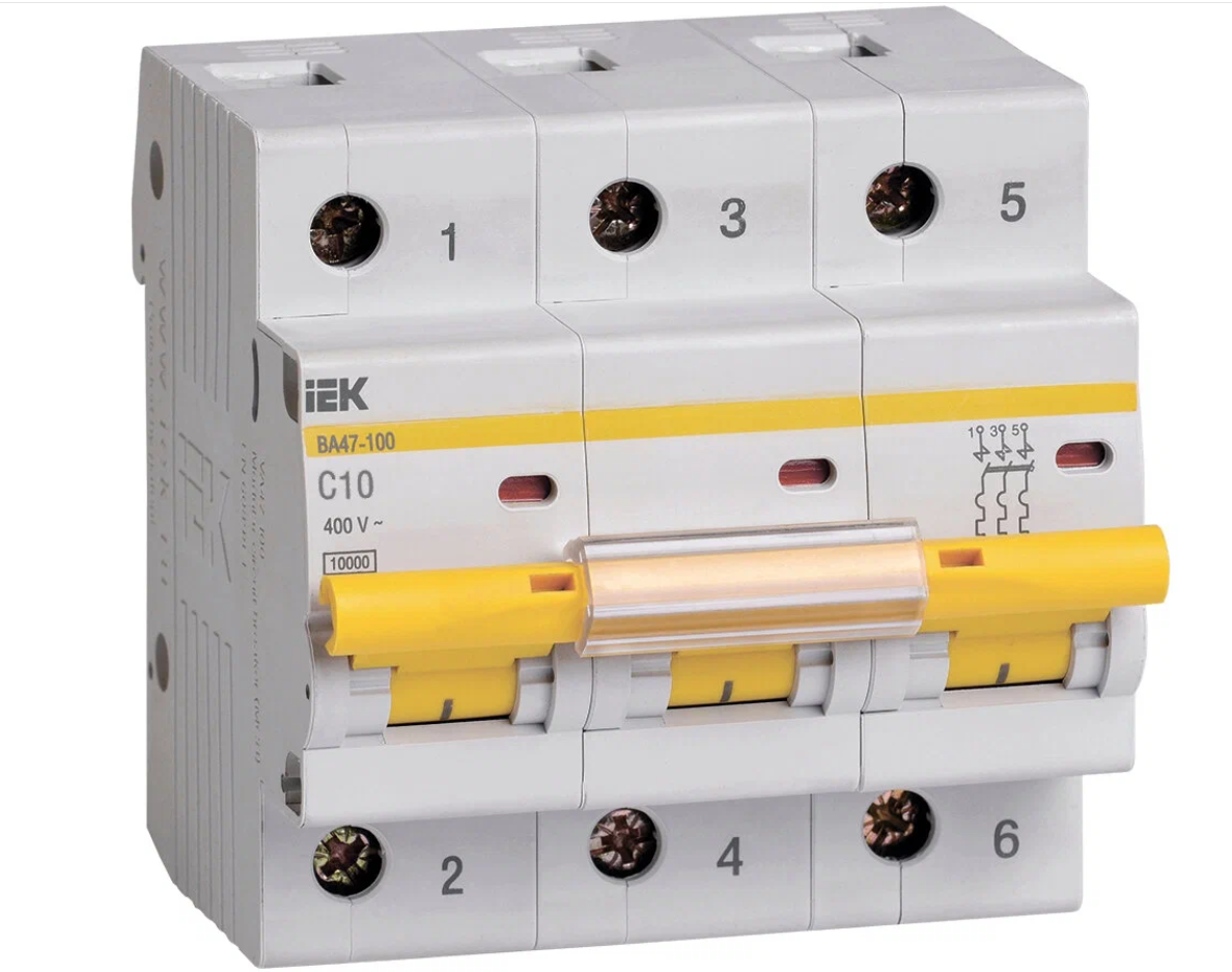 Автоматический выключатель ВА 47-100 3Р 10А 10 кА х-ка С, IEK, арт. MVA40-3-010-C: сравнение цен, характеристики, фото, актуальное наличие и цены.