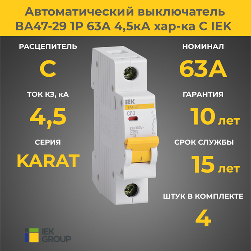 Выключатель автоматический однополюсный 63А С ВА47-29 х 4 шт: сравнение цен, характеристики, фото, актуальное наличие и цены.