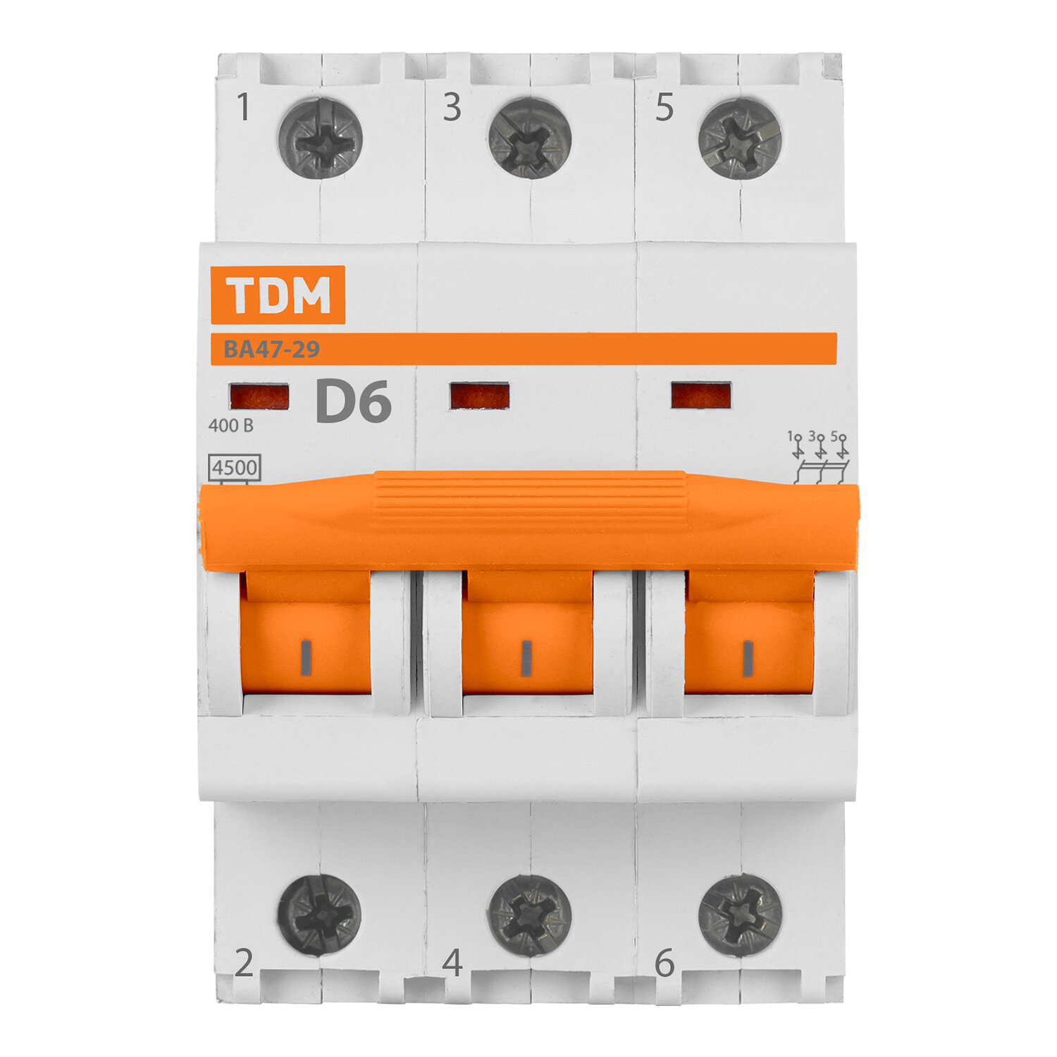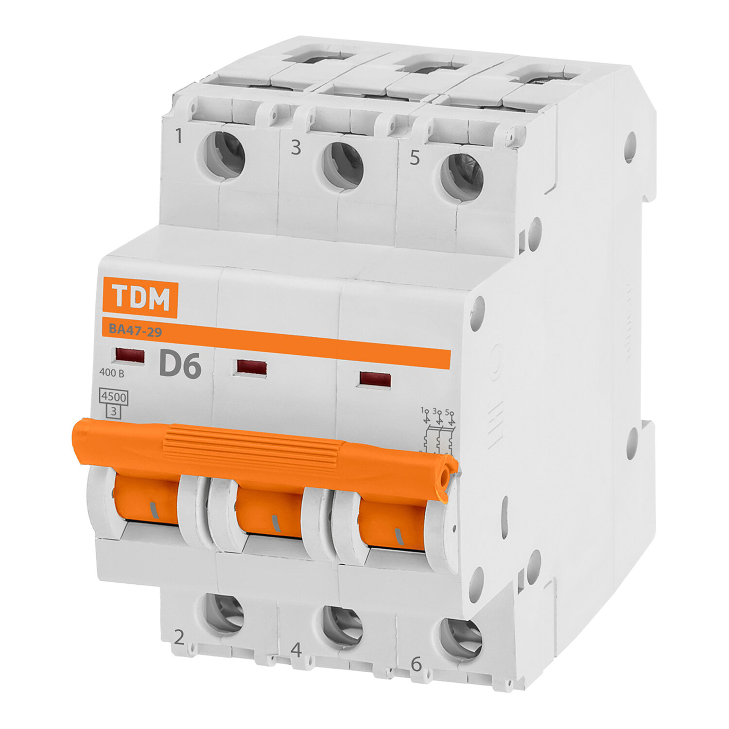 Автоматический выключатель ВА47-29 3Р 6А 4,5 кА тип D TDM Electric: сравнение цен, характеристики, фото, актуальное наличие и цены.