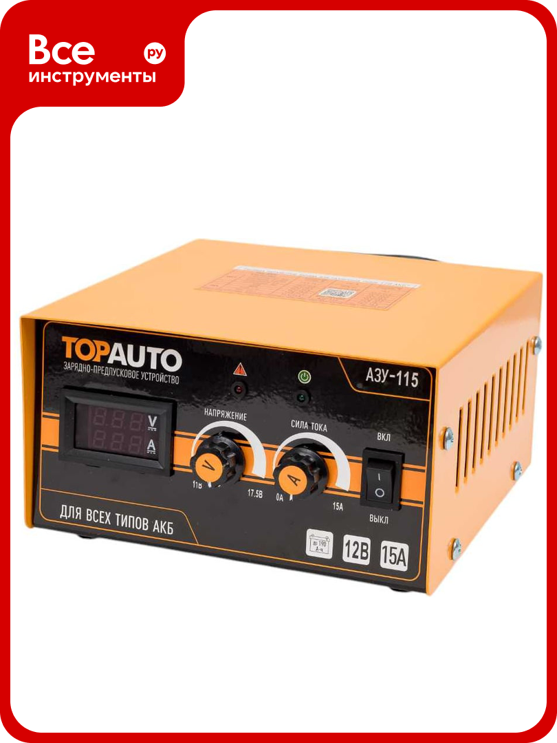 Автоматическое предпусковое зарядное устройство TopAuto АЗУ-115,15А, 29259: сравнение цен, характеристики, фото, актуальное наличие и цены.