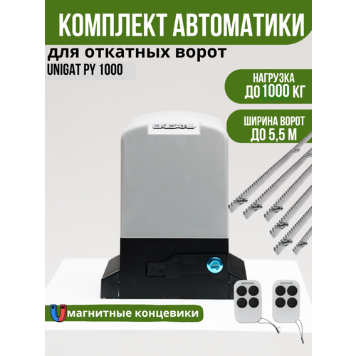 Автоматика для откатных ворот Unigate PY1000 (привод, 2 пульта, 6 зубчатых реек): сравнение цен, характеристики, фото, актуальное наличие и цены.