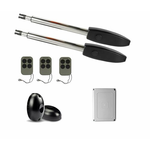 Состав комплекта: Привод KSW-2500 для распашных ворот, автоматика КОРН - 2 шт, Блок управления для распашных ворота EG-22 - 1 шт, Пульт КОРН KT-4 для ворот и шлагбаумов - 3 шт, Фотоэлементы КОРН AIS-10 - 1 шт.