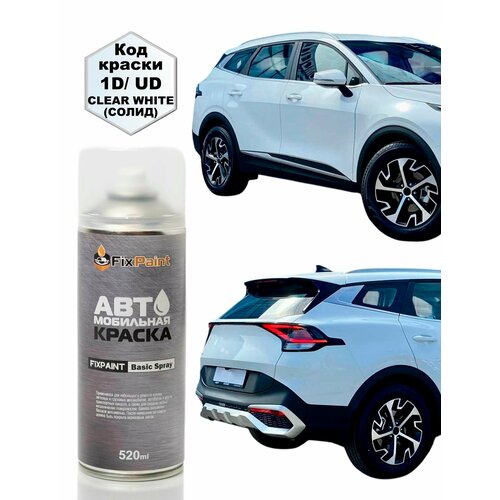 Аэрозольная краска FixPaint Spray для автомобилей KIA SPORTAGE 2 (KM), код краски 1D, название цвета (оттенок) CLEAR WHITE солид, предназначена для ремонтной покраски металлических и пластиковых кузовных элементов автомобиля по технологии идентичной профессиональной и позволяет качественно выполнить восстановление лакокрасочного покрытия.