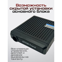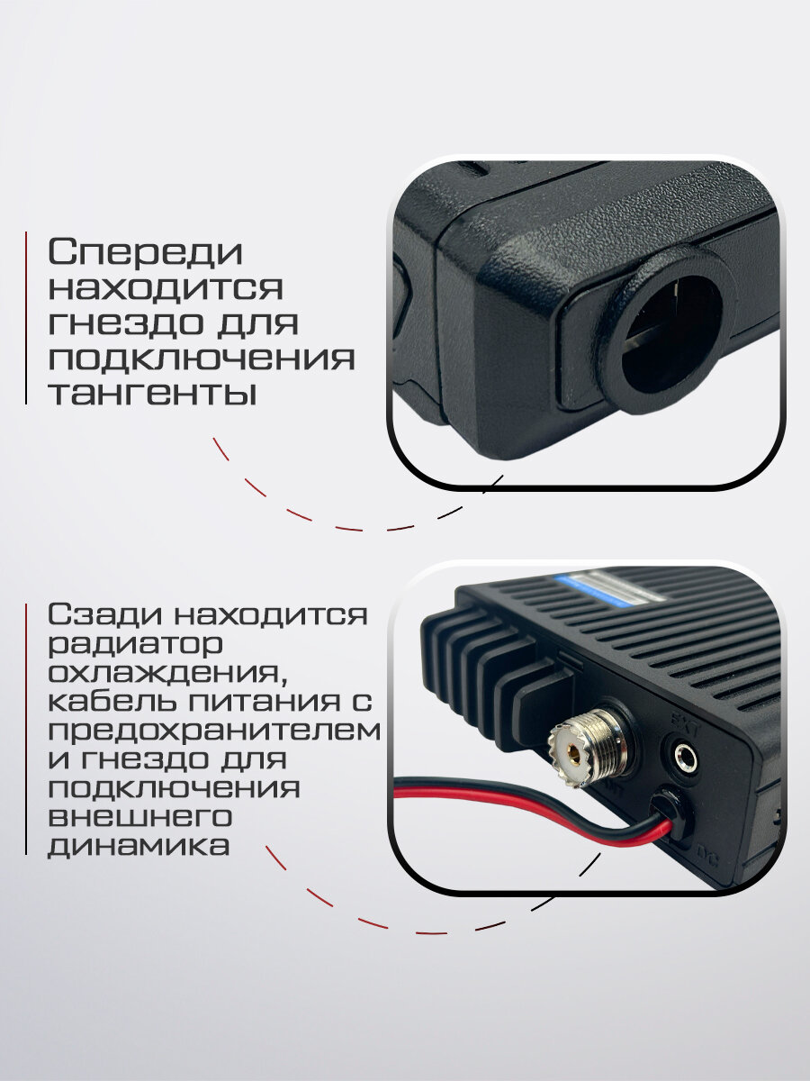 Возможность скрытой установки основного блока — это главная отличительная особенность радиостанции. Все клавиши управления, дисплей и динамик вынесены на тангенту.