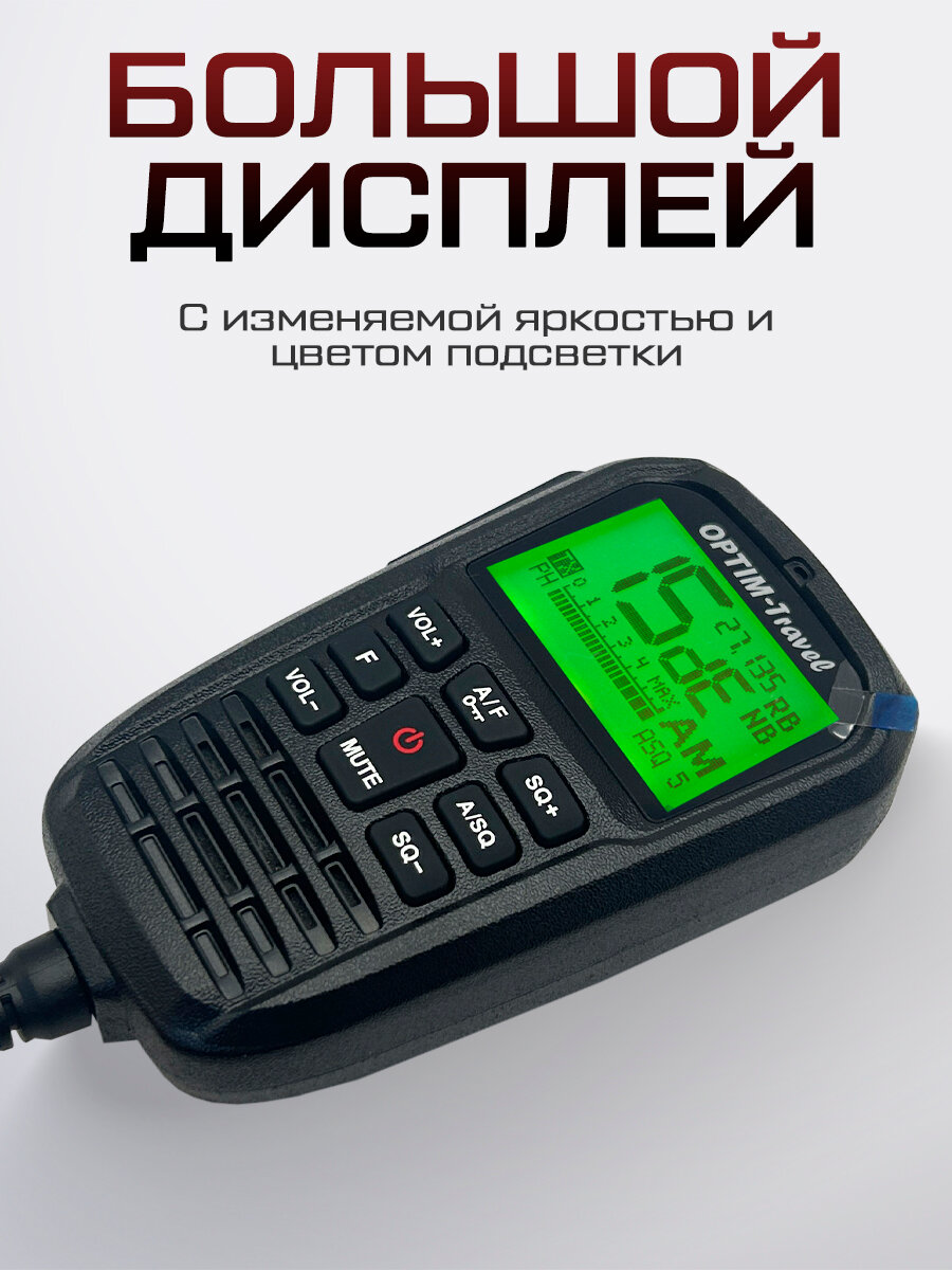 Автомобильная радиостанция OPTIM TRAVEL предназначена для осуществления радиосвязи в диапазоне частот 27 МГц (Си-Би, CB) с частотной или амплитудной модуляцией (AM и FM), эксплуатируется в автомобиле, но может быть использована в качестве базовой радиостанции.