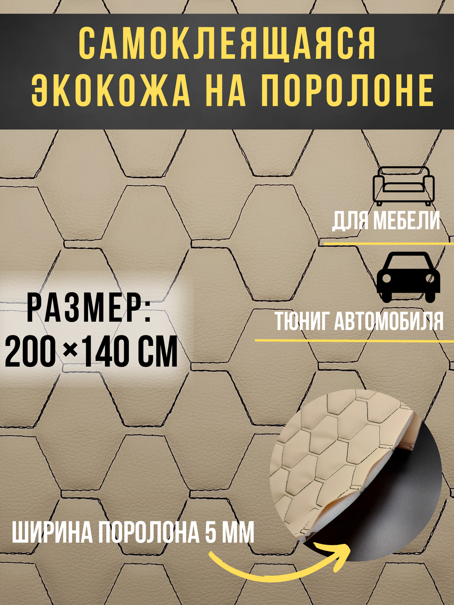 Автомобильная самоклеющаяся экокожа на поролоне бежевая строчка черная 200х140 см , сота: сравнение цен, характеристики, фото, актуальное наличие и цены.