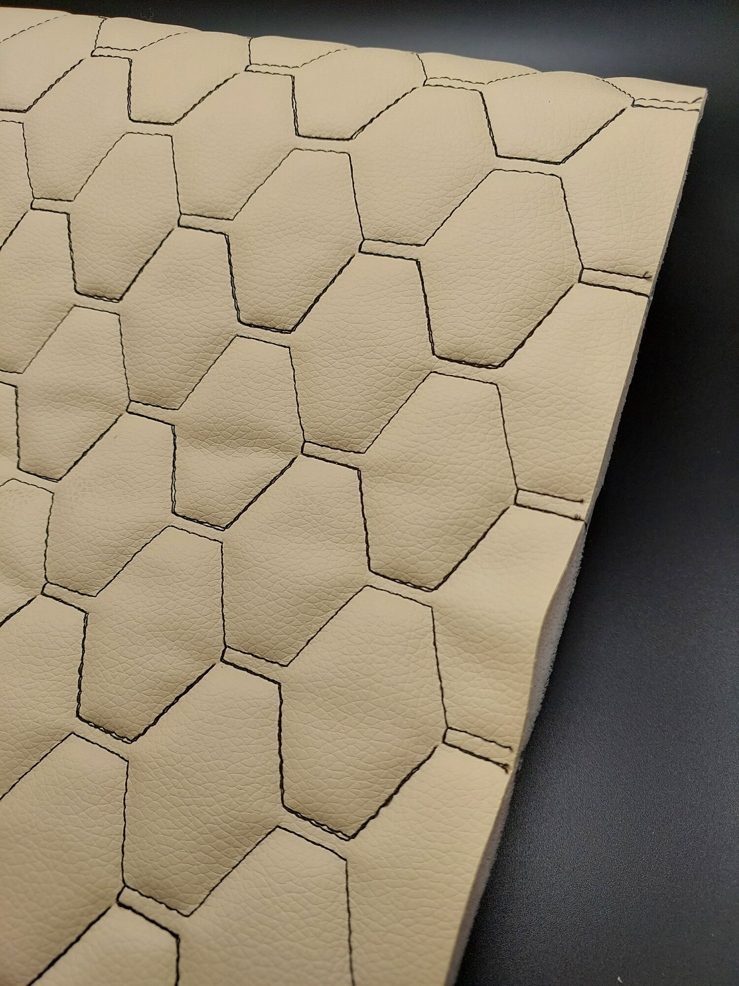 Купить Автомобильная самоклеющаяся экокожа на поролоне бежевая строчка черная 200х140 см , сота с доставкой по всей России.