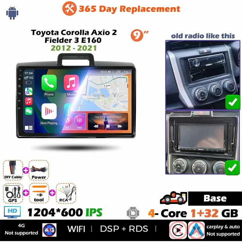 Автомобильное обновление Android для Toyota Corolla Axio 2 Fielder 3 E160 2012-2021 Авторадио Стерео головное устройство Мультимедийный плеер GPS BT HC 1 32G A