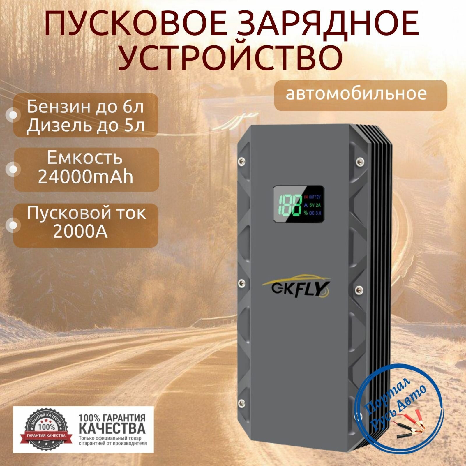 Купить Автомобильное пусковое портативное устройство, бустер GKFLY 22000 мАч 2000A с доставкой по всей России.
