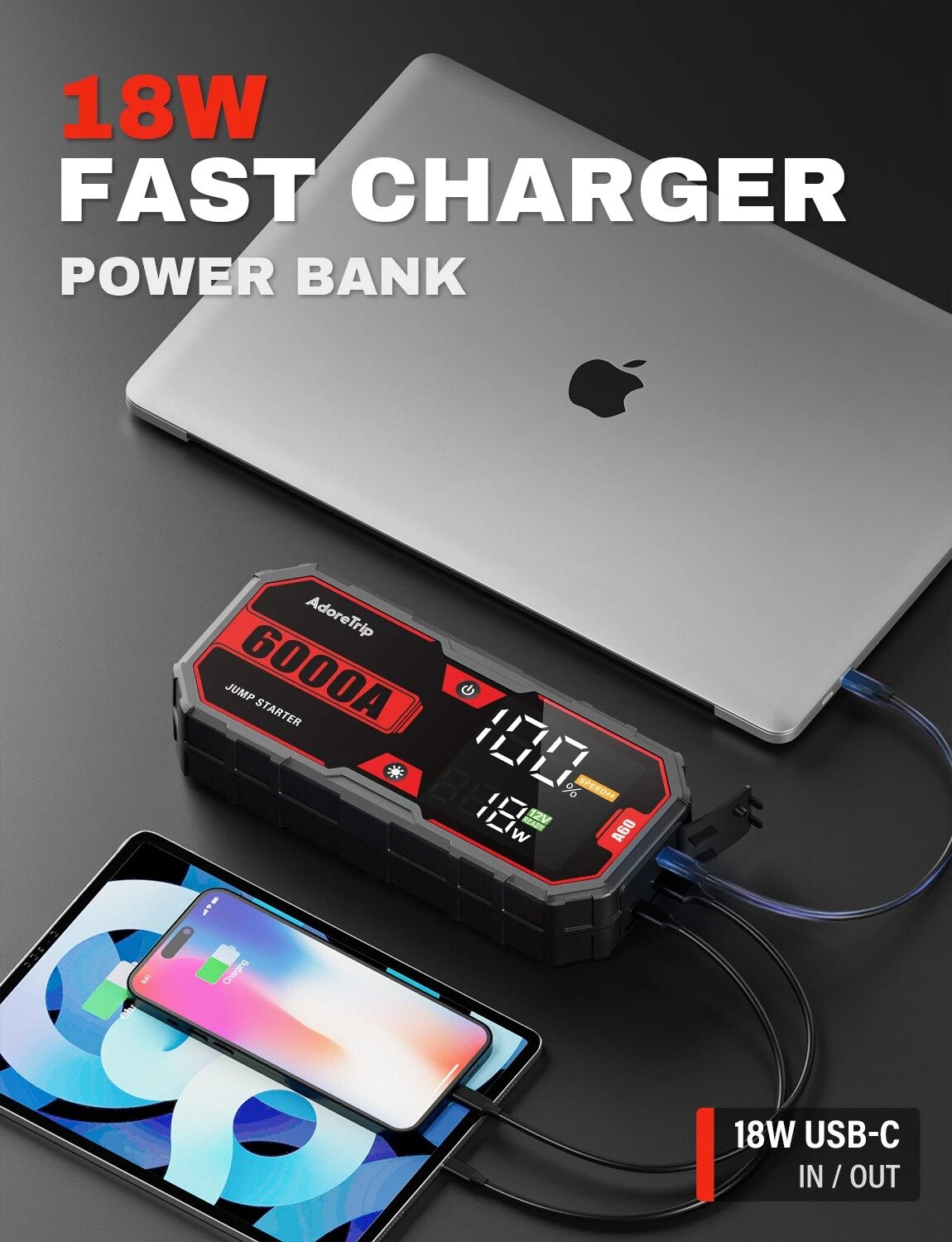 Купить Автомобильное пусковое портативное устройство бустер JF.EGWO 20000mAh 6000A с доставкой по всей России.