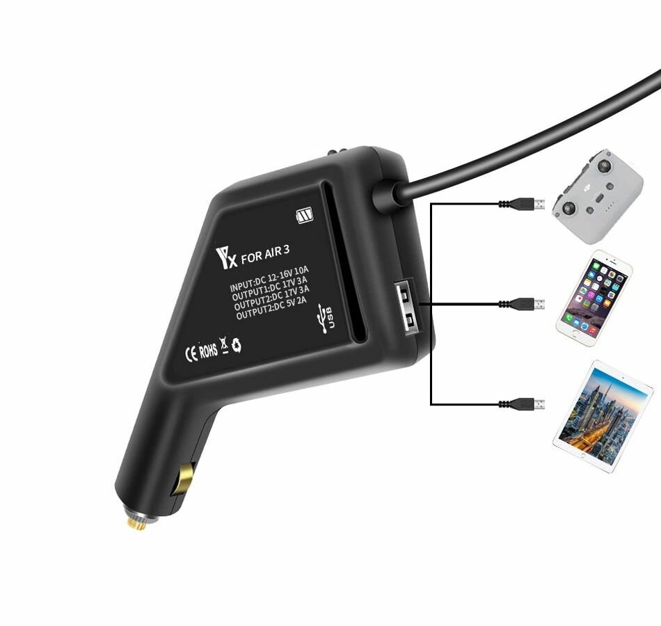 Купить Автомобильное зарядное устройство для 2 аккумуляторов и пульта DJI Air 3 / 3S YX 109449 с доставкой по всей России. Автомобильное зарядное устройство для 2 аккумуляторов и пульта DJI Air 3 / 3S YX 109449: сравнение цен, характеристики, фото, актуальное наличие и цены.