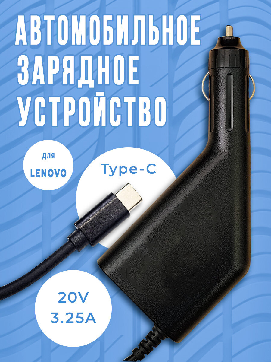 Автомобильное зарядное устройство для ноутбука Lenovo 65W разъем: TYPE-C.