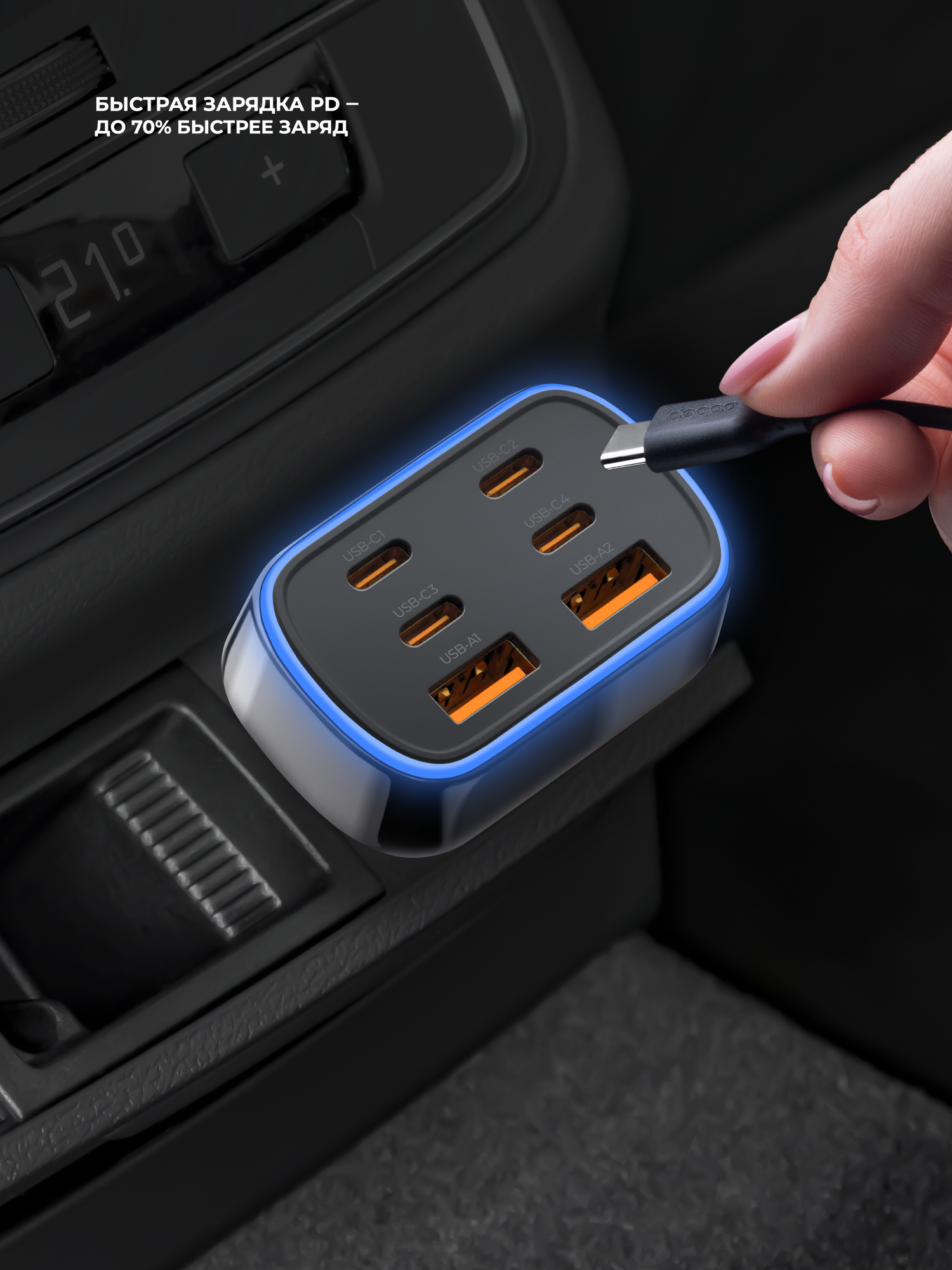 Автомобильное зарядное устройство для телефона 2xUSB-A + 4xUSB-C, PD, QC 3.0, 105Вт, металл, чёрный, 11226 Deppa: сравнение цен, характеристики, фото, актуальное наличие и цены.