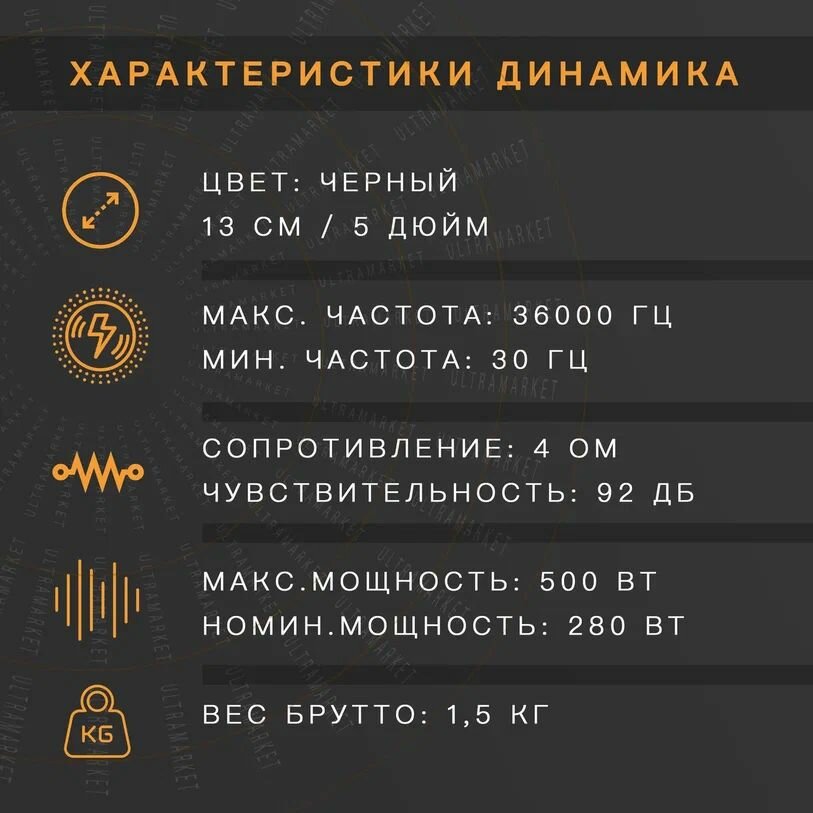 · Динамики 2 шт. · Защитные сетки 2 шт. · Провода для подключения · Крепления для саморезов 8 шт. · Саморезы для акустики 8 шт.