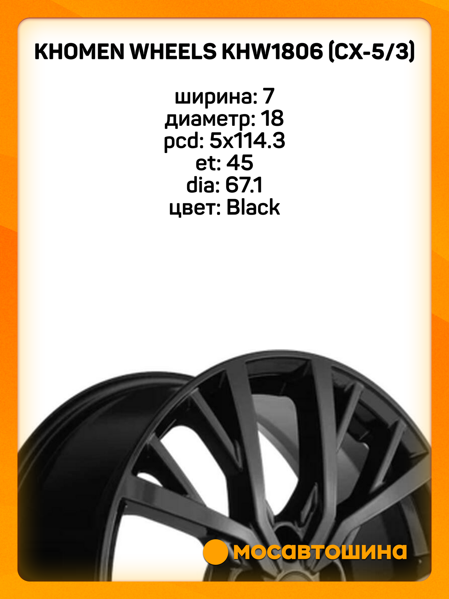 Автомобильные диски Khomen Wheels KHW1806 (CX-5/3) 7×18 5×114.3 ET 45 Dia 67.1 Black: сравнение цен, характеристики, фото, актуальное наличие и цены.