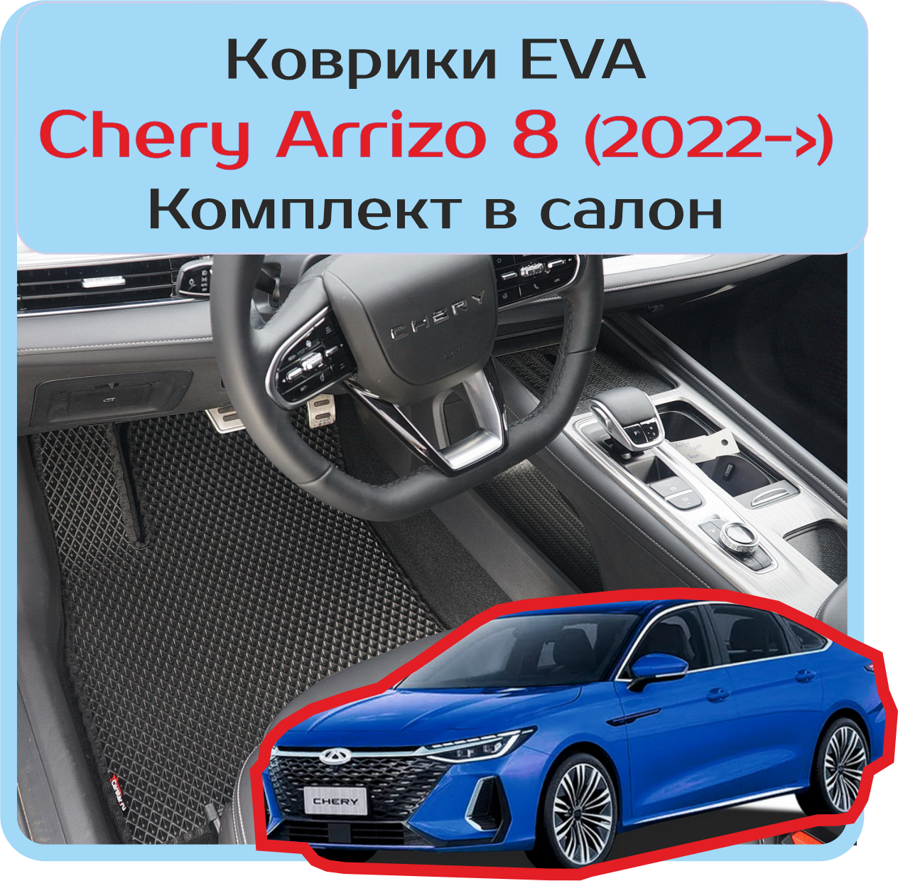 Автомобильные коврики EVA для Chery Arrizo 8 (2022->), чёрные с чёрным кантом, ячейка — ромб: сравнение цен, характеристики, фото, актуальное наличие и цены.