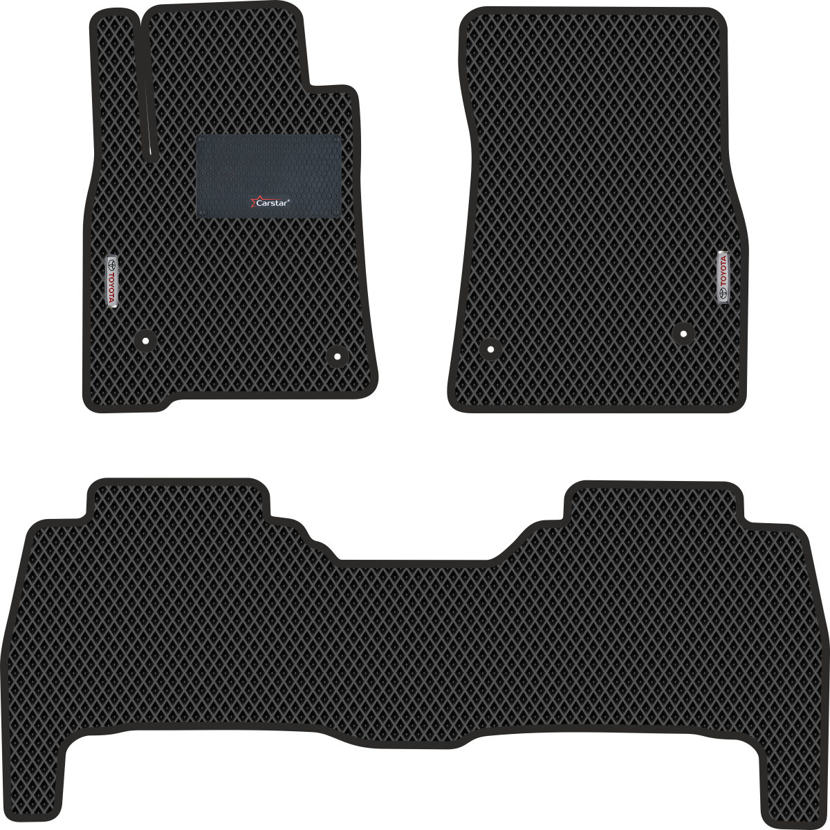 Автомобильные коврики EVA для Toyota Land Cruiser 200 дорестайл (2007-2012), каучуковый подпятник и 2 эмблемы, чёрные с чёрным кантом, ячейка — ромб: сравнение цен, характеристики, фото, актуальное наличие и цены.