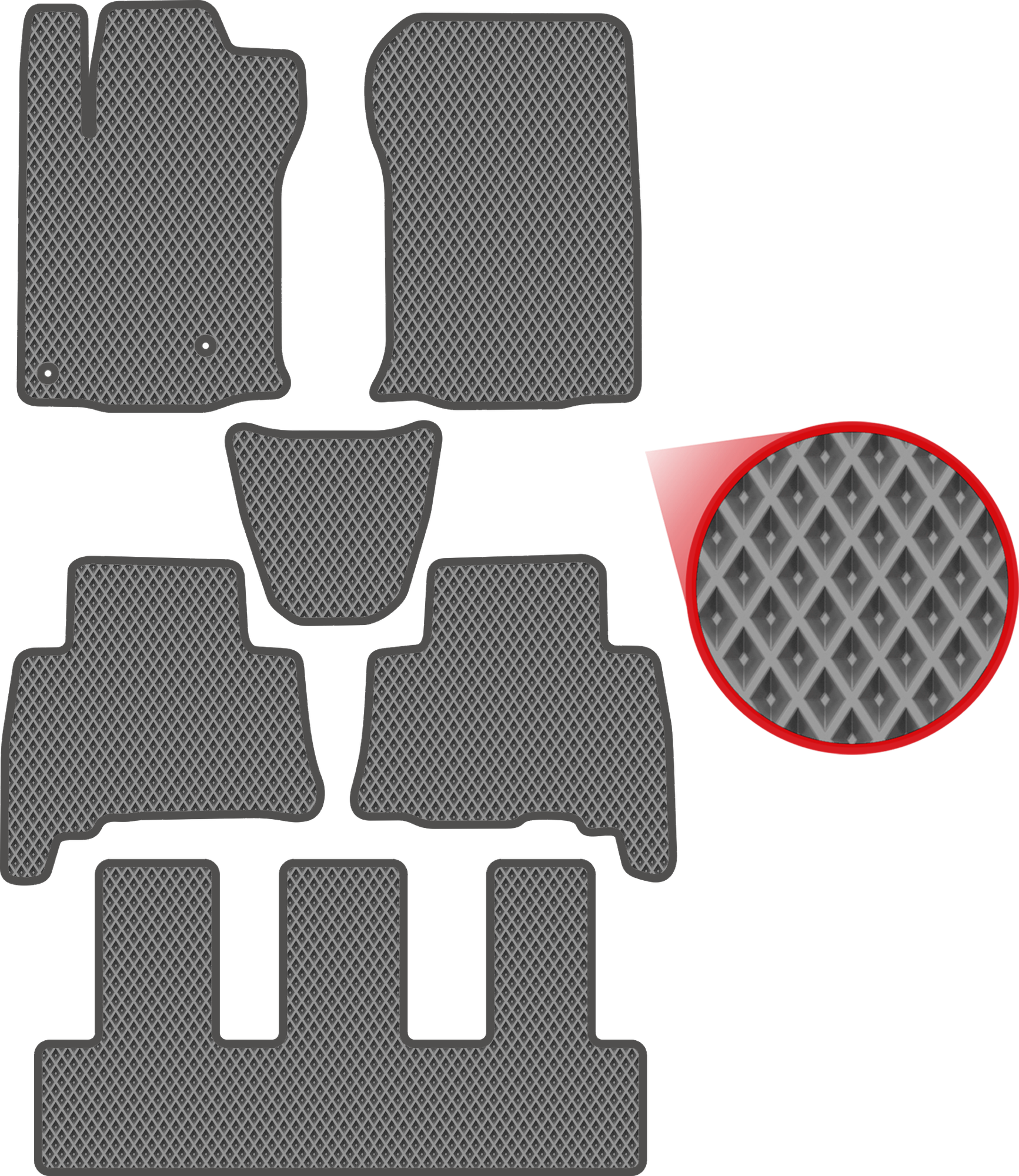 Автомобильные коврики EVA для Toyota Land Cruiser Prado 150 дорестайл 3 ряда (2009-2013), серые с серым кантом, ячейка — ромб: сравнение цен, характеристики, фото, актуальное наличие и цены.