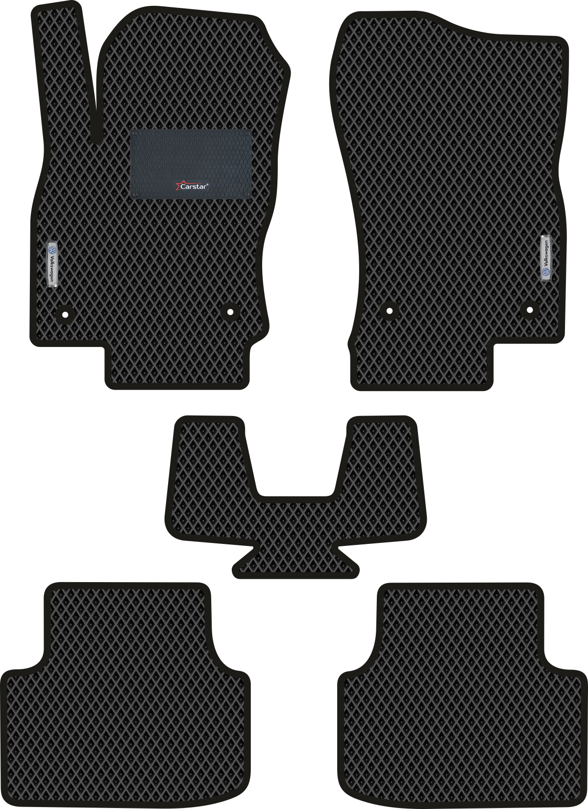 Автомобильные коврики EVA для Volkswagen Passat B8 (2014-н/в), с каучуковым подпятником и 2 эмблемами Volkswagen, чёрные с чёрным кантом, ячейка ромб: сравнение цен, характеристики, фото, актуальное наличие и цены.