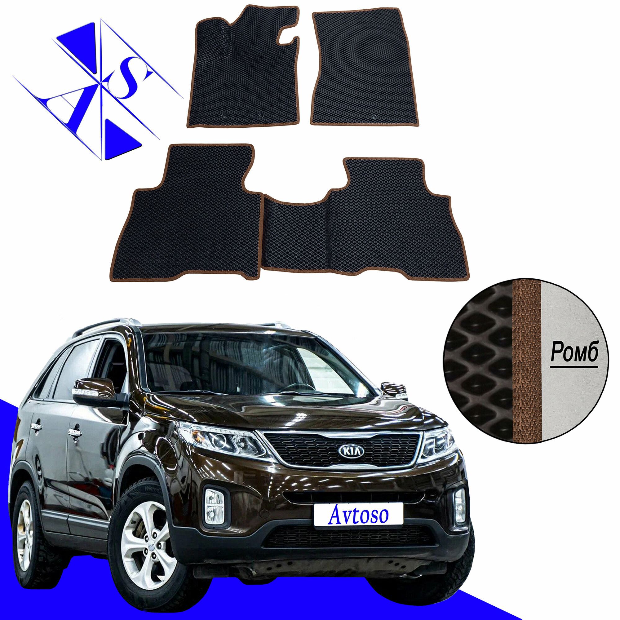 Автомобильные коврики EVA/ЕВА/ЭВА для Kia Sorento 2 II (XM) / Киа Соренто 2 II (XM) 2012-2021 черный коричневый: сравнение цен, характеристики, фото, актуальное наличие и цены.
