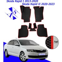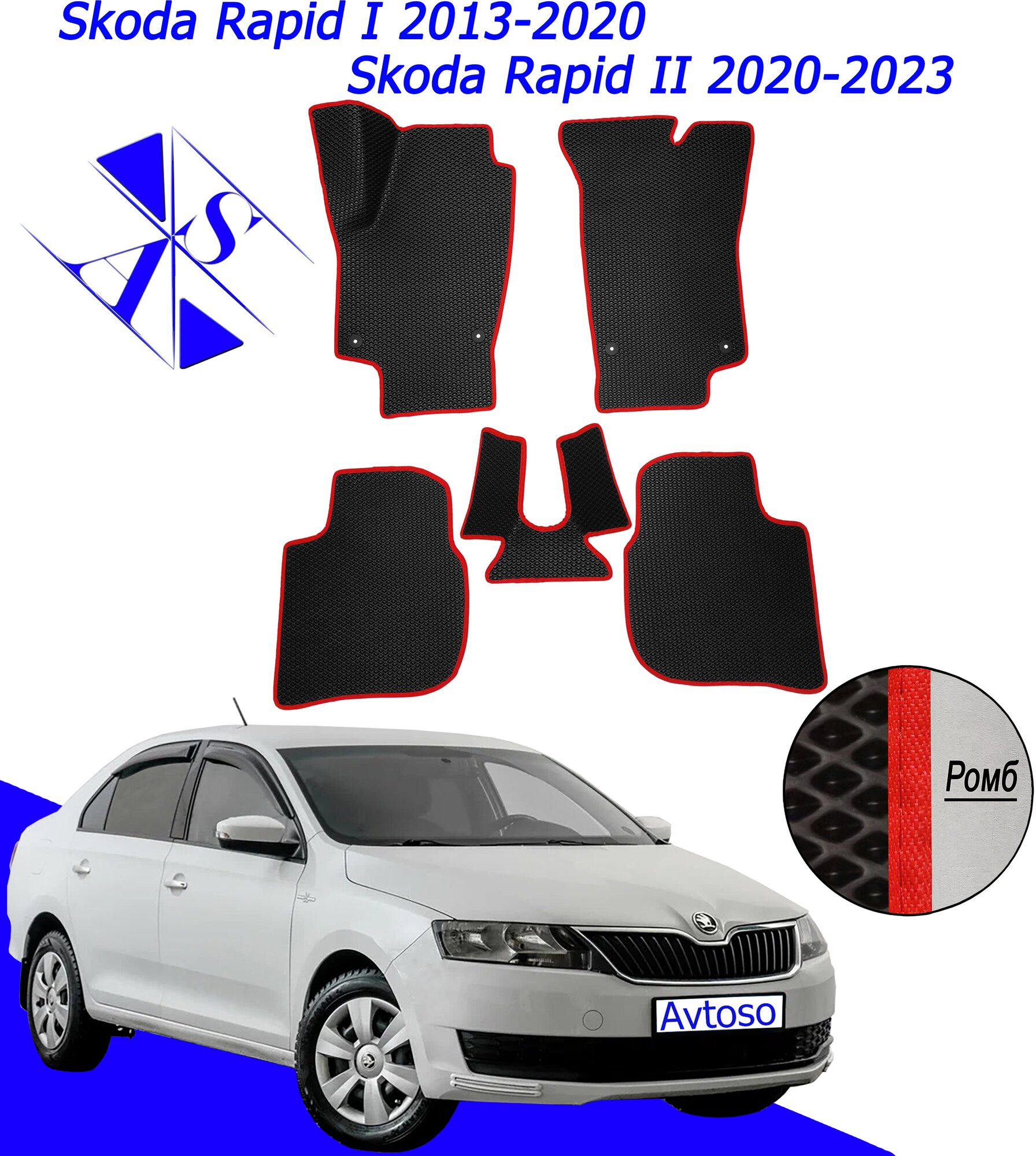 Автомобильные коврики EVA/ЕВА/ЭВА для Skoda Rapid 1 и 2 / Шкода Рапид 1 и 2 / 2013-2023 черный красный: сравнение цен, характеристики, фото, актуальное наличие и цены.