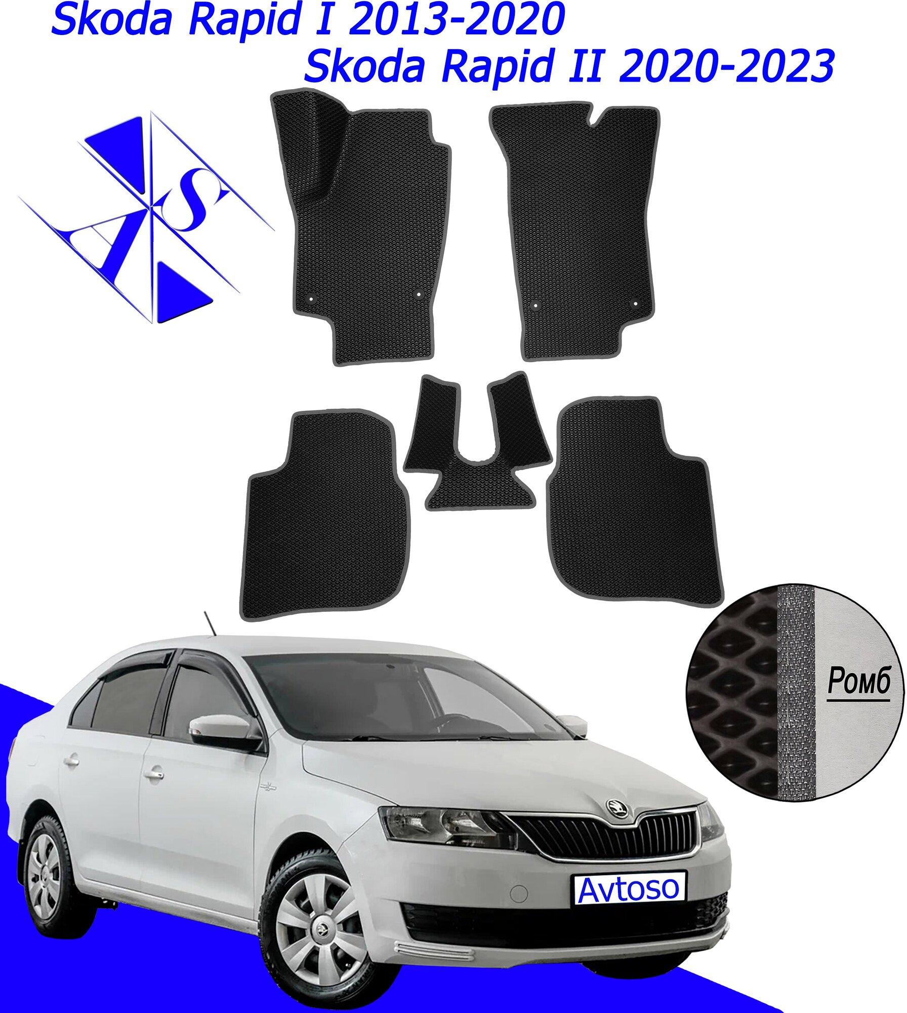 Автомобильные коврики EVA/ЕВА/ЭВА для Skoda Rapid 1 и 2 / Шкода Рапид 1 и 2 / 2013-2023 черный темно серый: сравнение цен, характеристики, фото, актуальное наличие и цены.