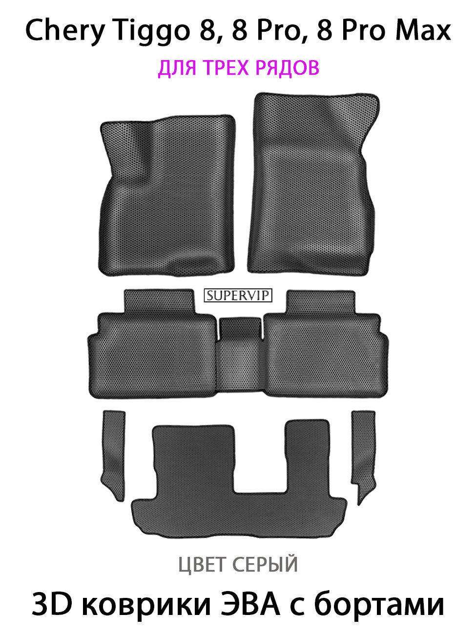 Купить Автомобильные коврики ЭВА с Бортами Chery Tiggo 8, 8 Pro, 8 Pro Max для 3-х рядов. ЕВА соты SUPERVIP Чери Тигго. с доставкой по всей России.