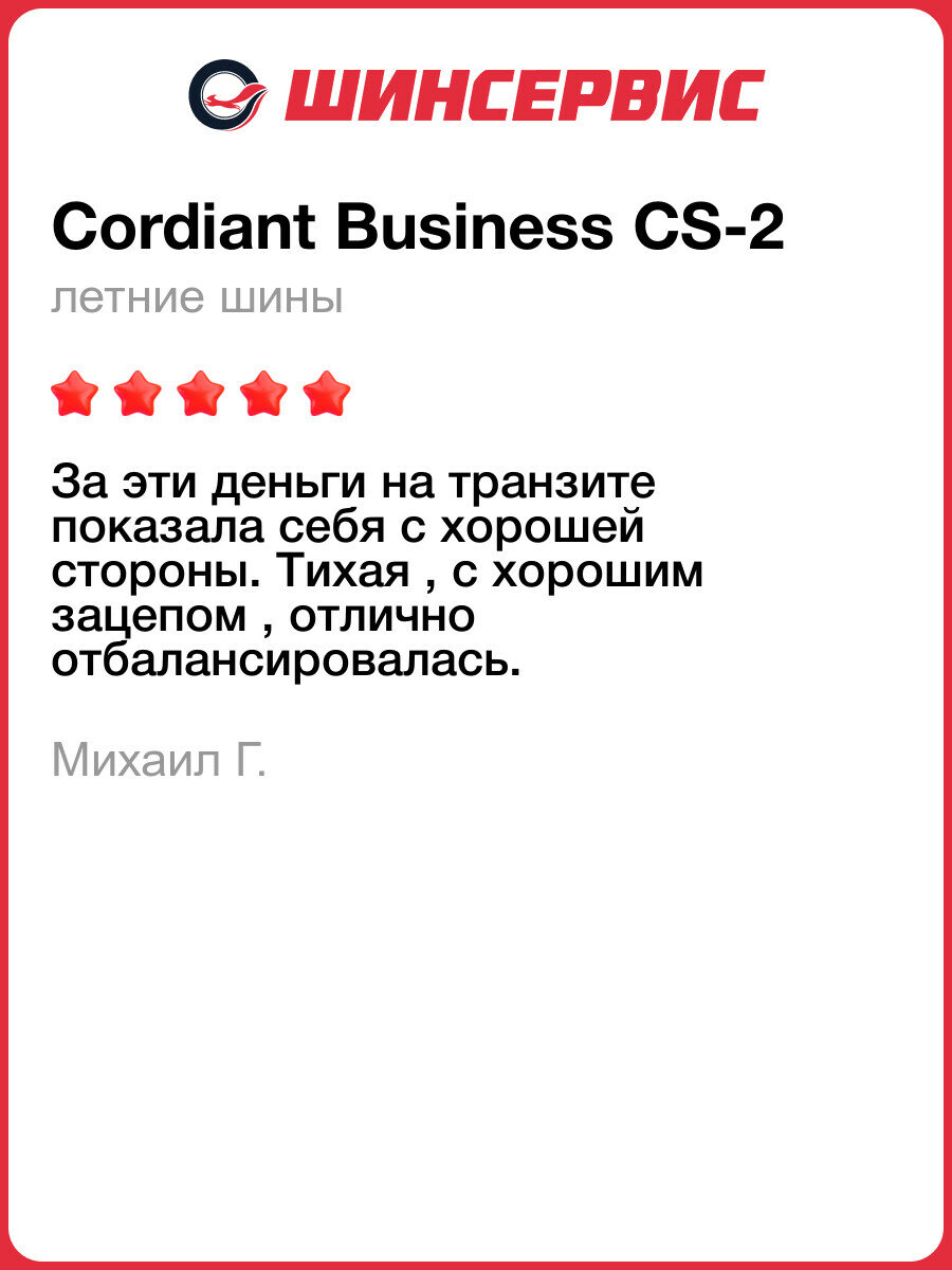 Cordiant Business CS 2 - Летняя шина для легких грузовиков и микроавтобусов, обеспечивающая безопасную перевозку грузов, даже в самых непростых погодных условиях.